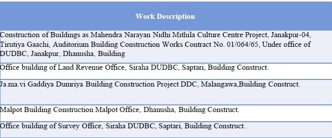 General Experience in Construction Works